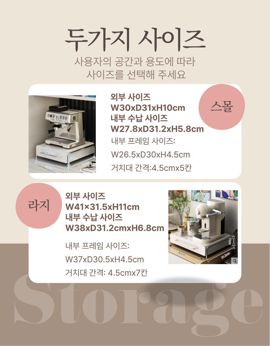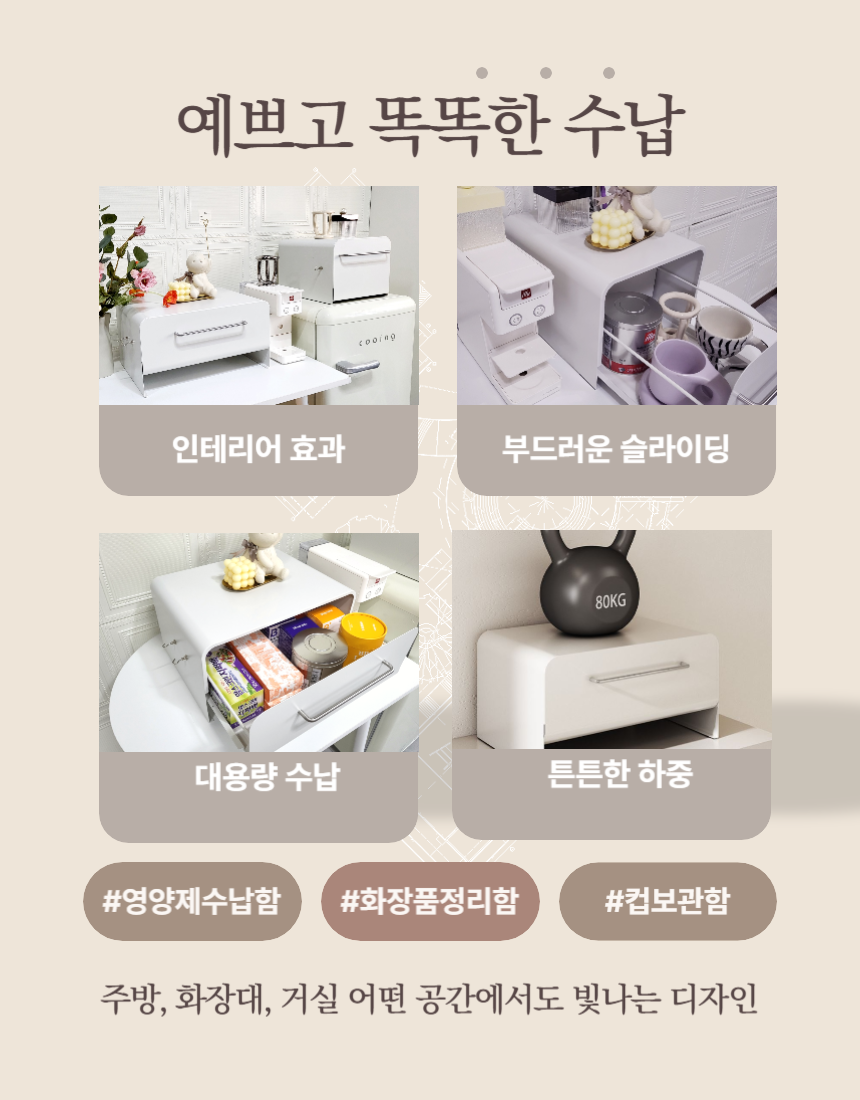 옵션4~5.슬라이딩 수납함 , 화이트- 스몰,라지