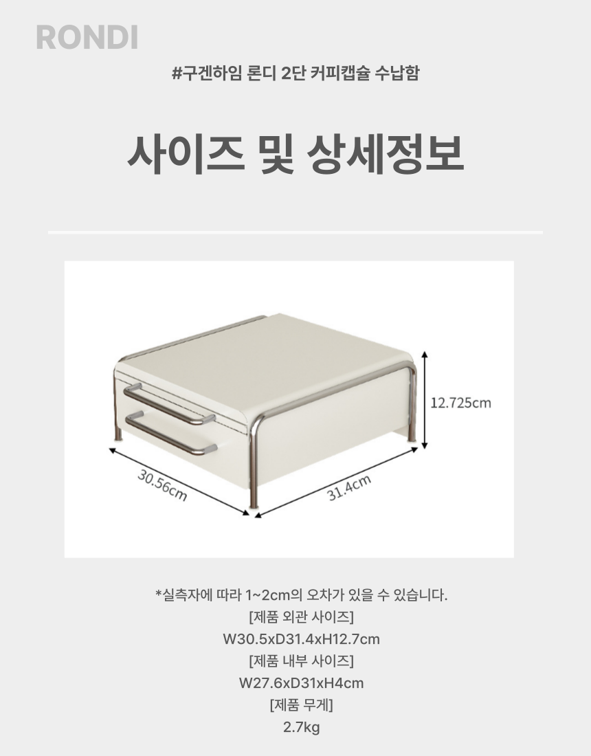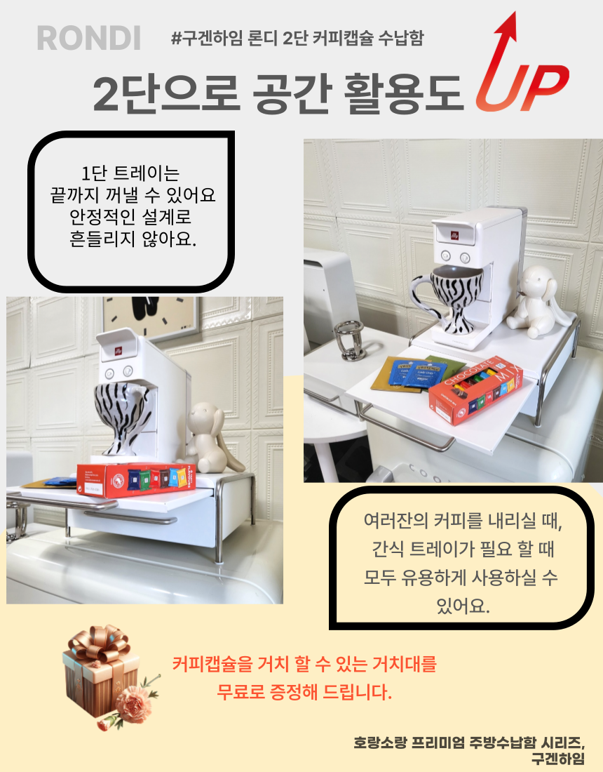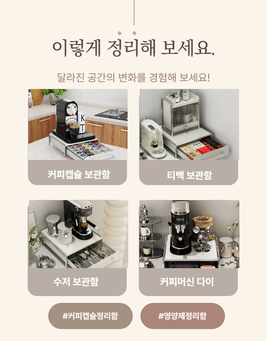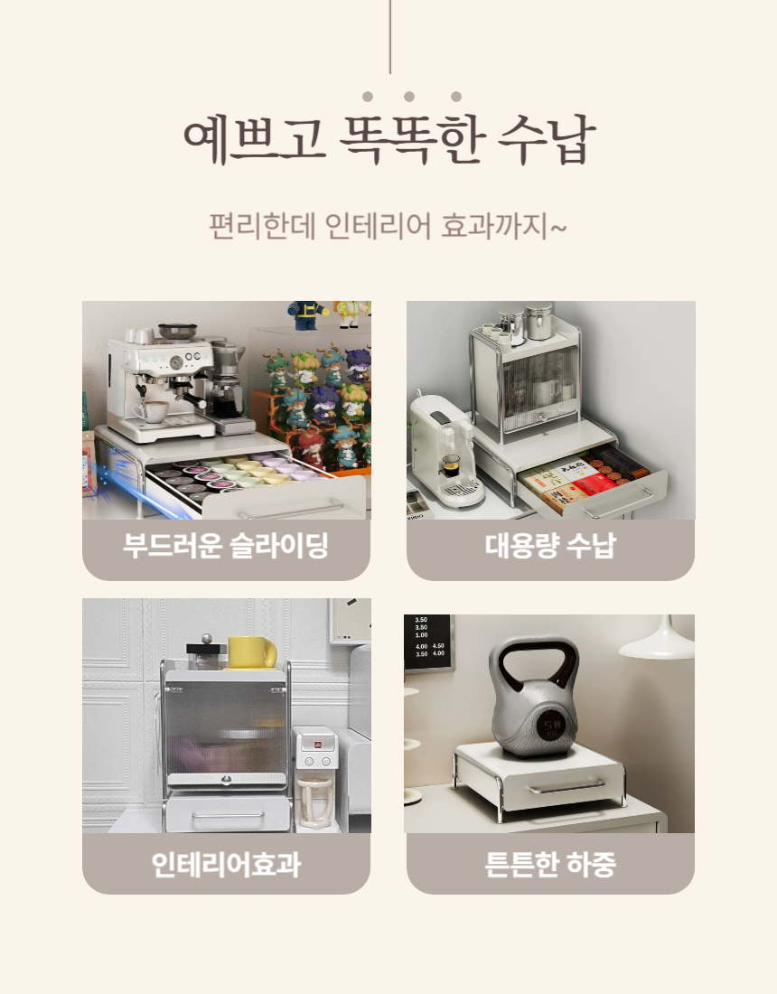 슬라이딩 커피캡슐 수납함,화이트-스몰,라지