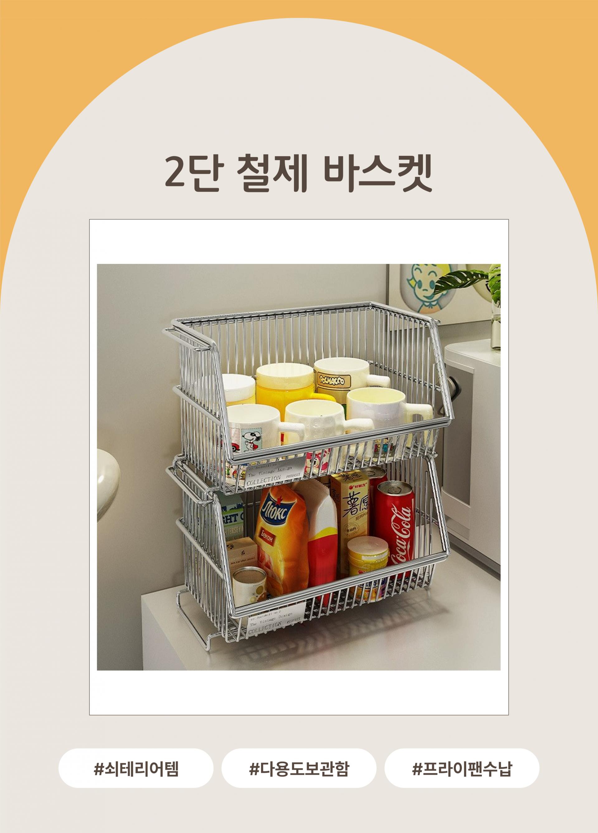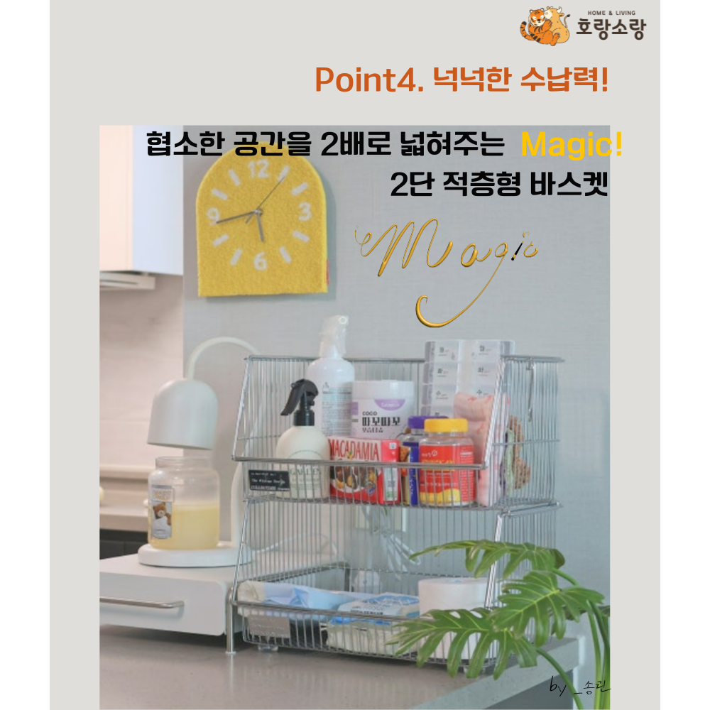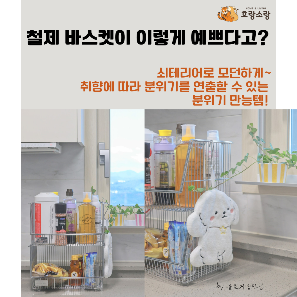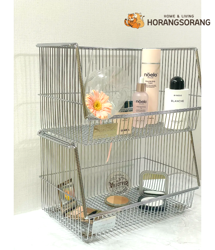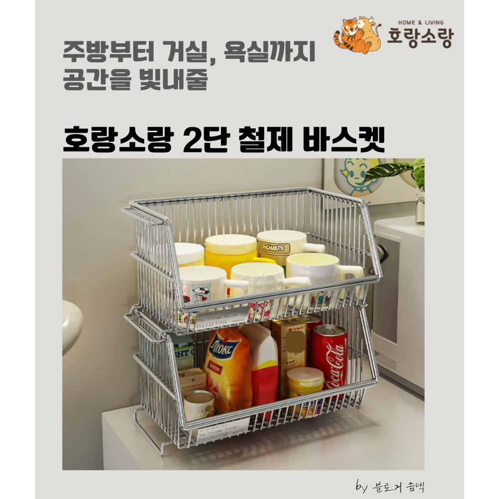 쇠테리어 호랑소랑 철제 적층형 2단 바스켓