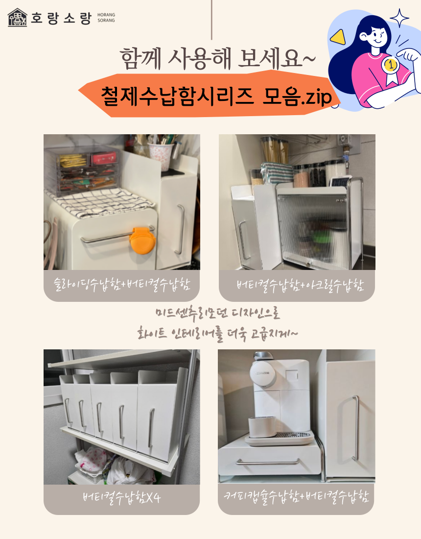 👉 철제 슬라이딩 수납함 + 철제 버티컬 수납함