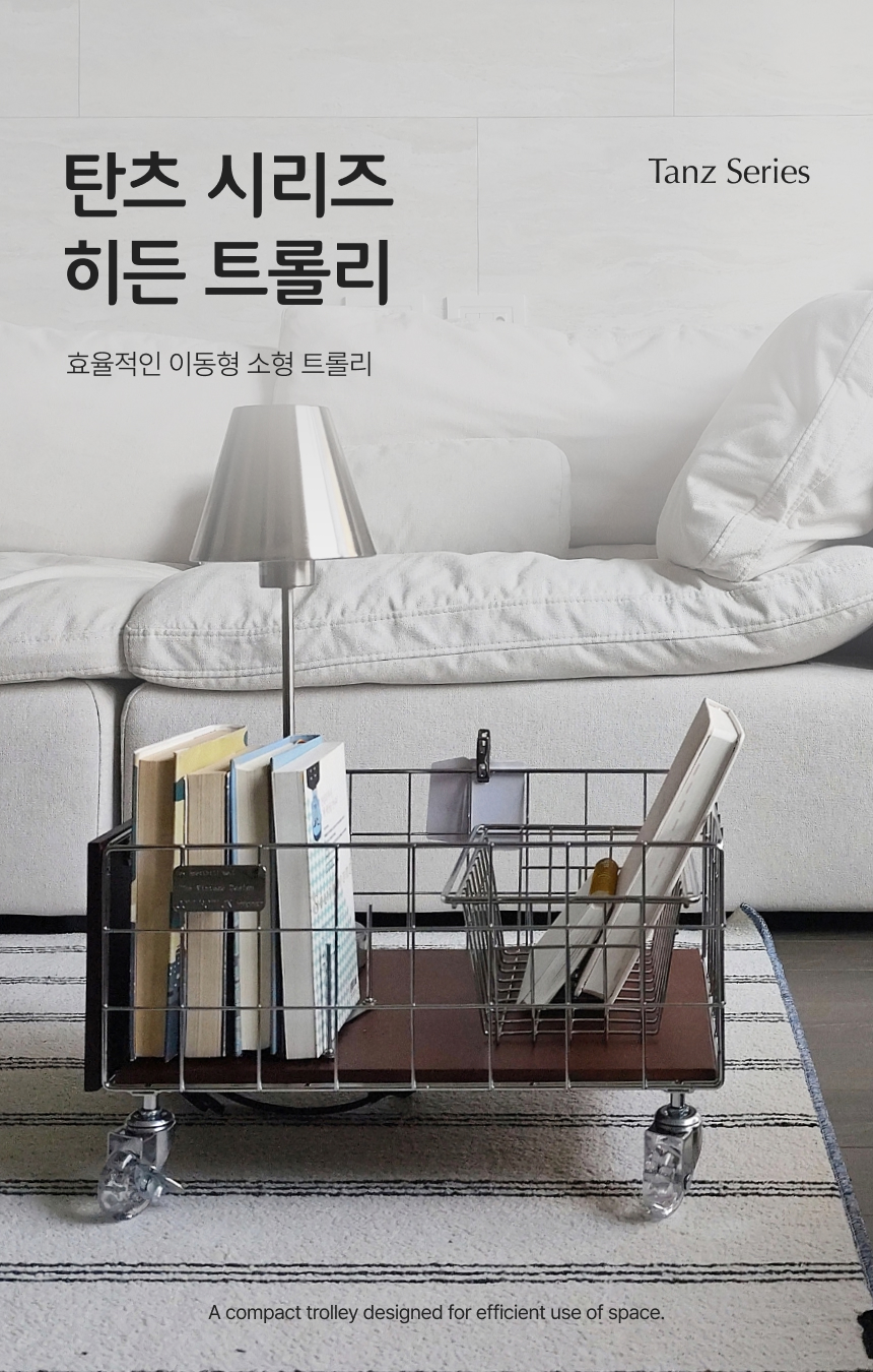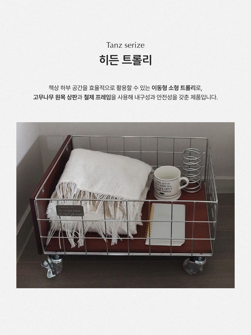 [Tanz]미니 철제 원목 수납 트롤리 북카트