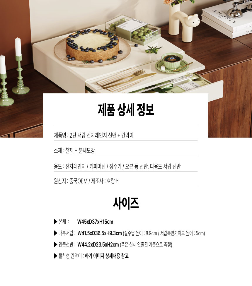 전자레인지선반 수납장 철제 2단 서랍+자석선반2p&히든선반