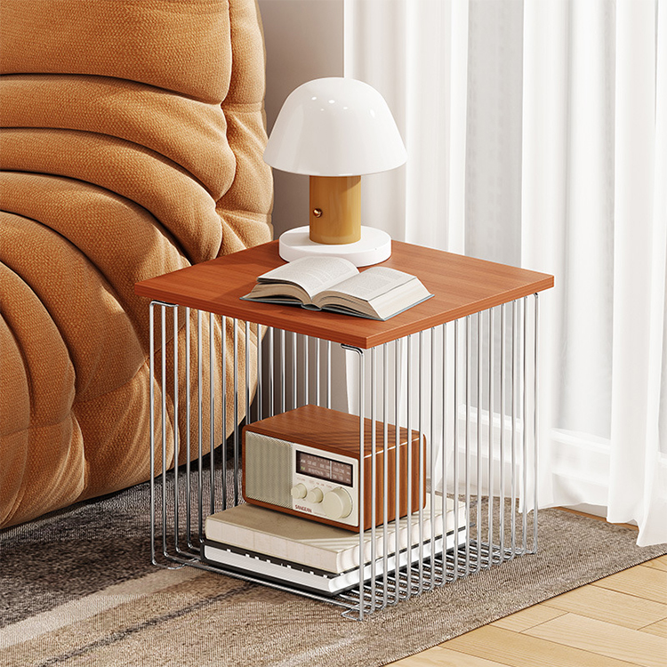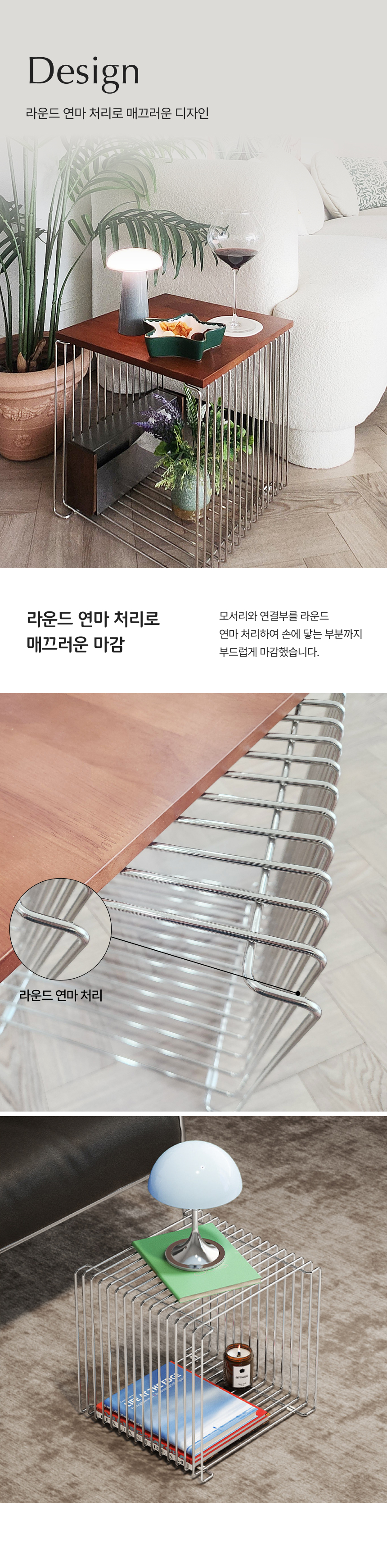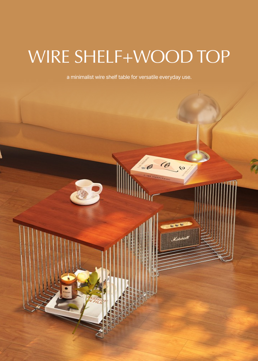 탄츠 와이어 선반 원목 상판 사이드테이블