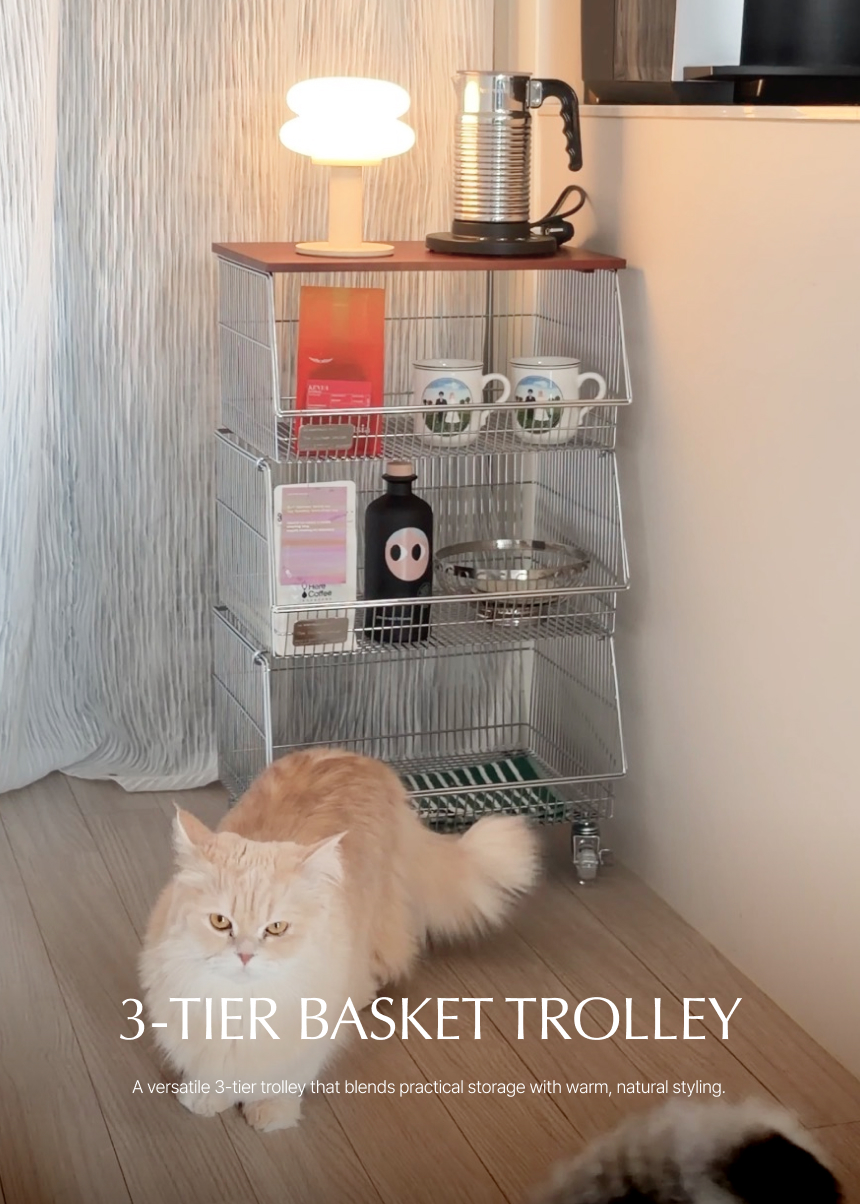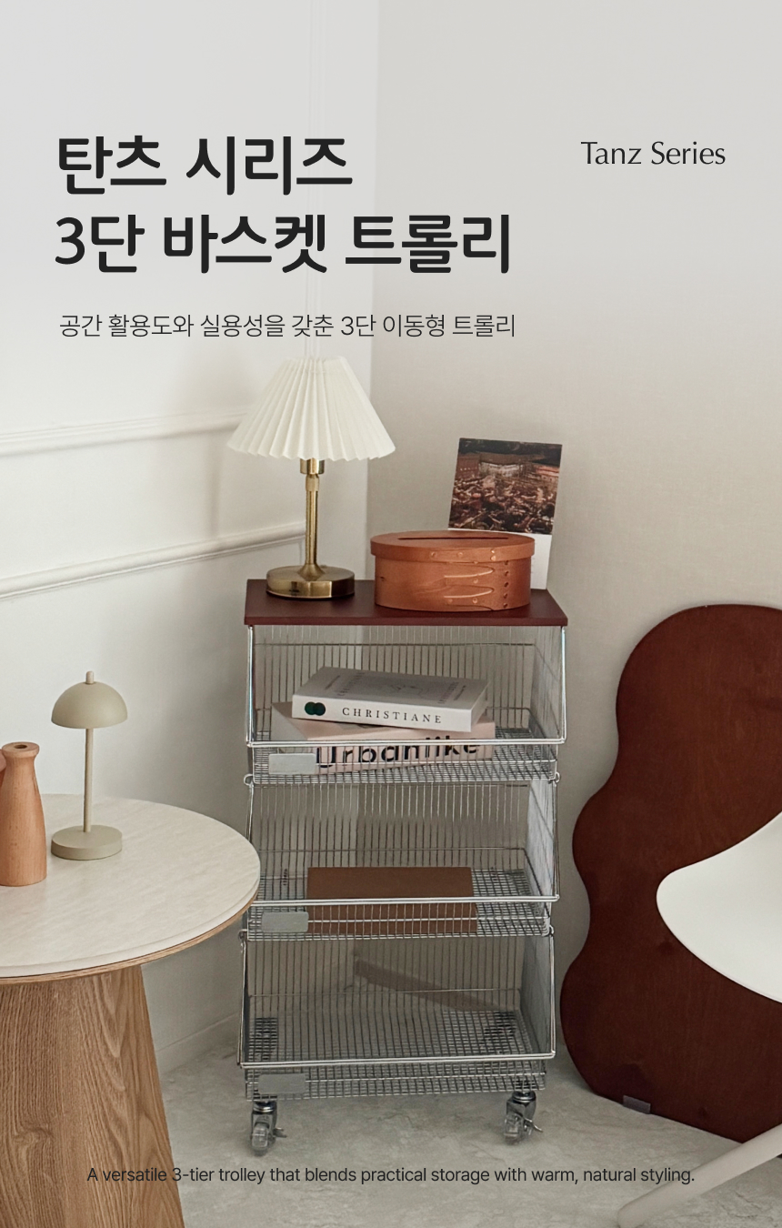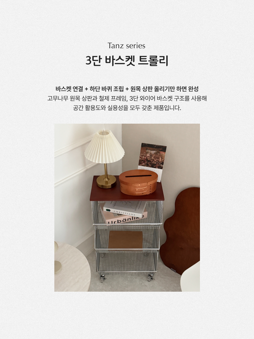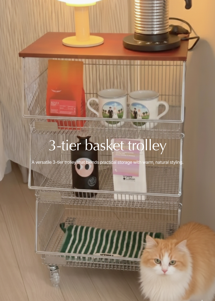 탄츠 3단 바스켓 트롤리 이동식 수납장