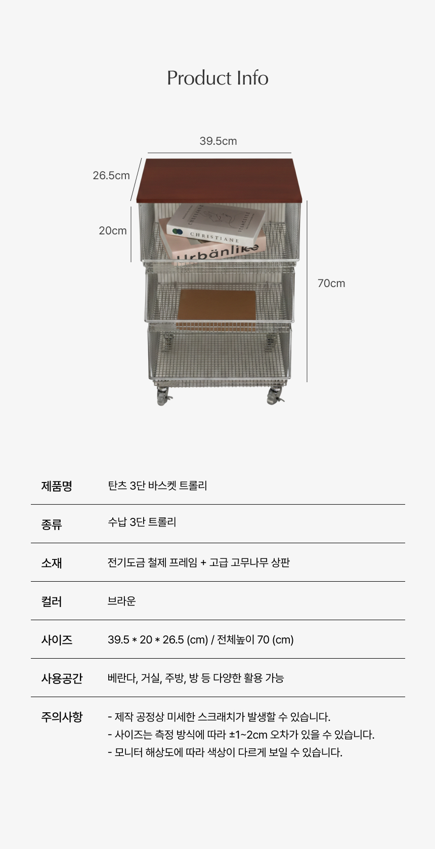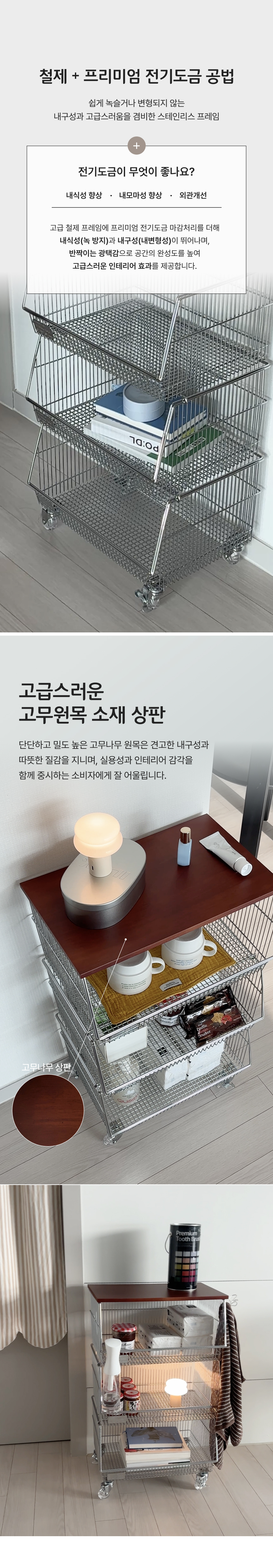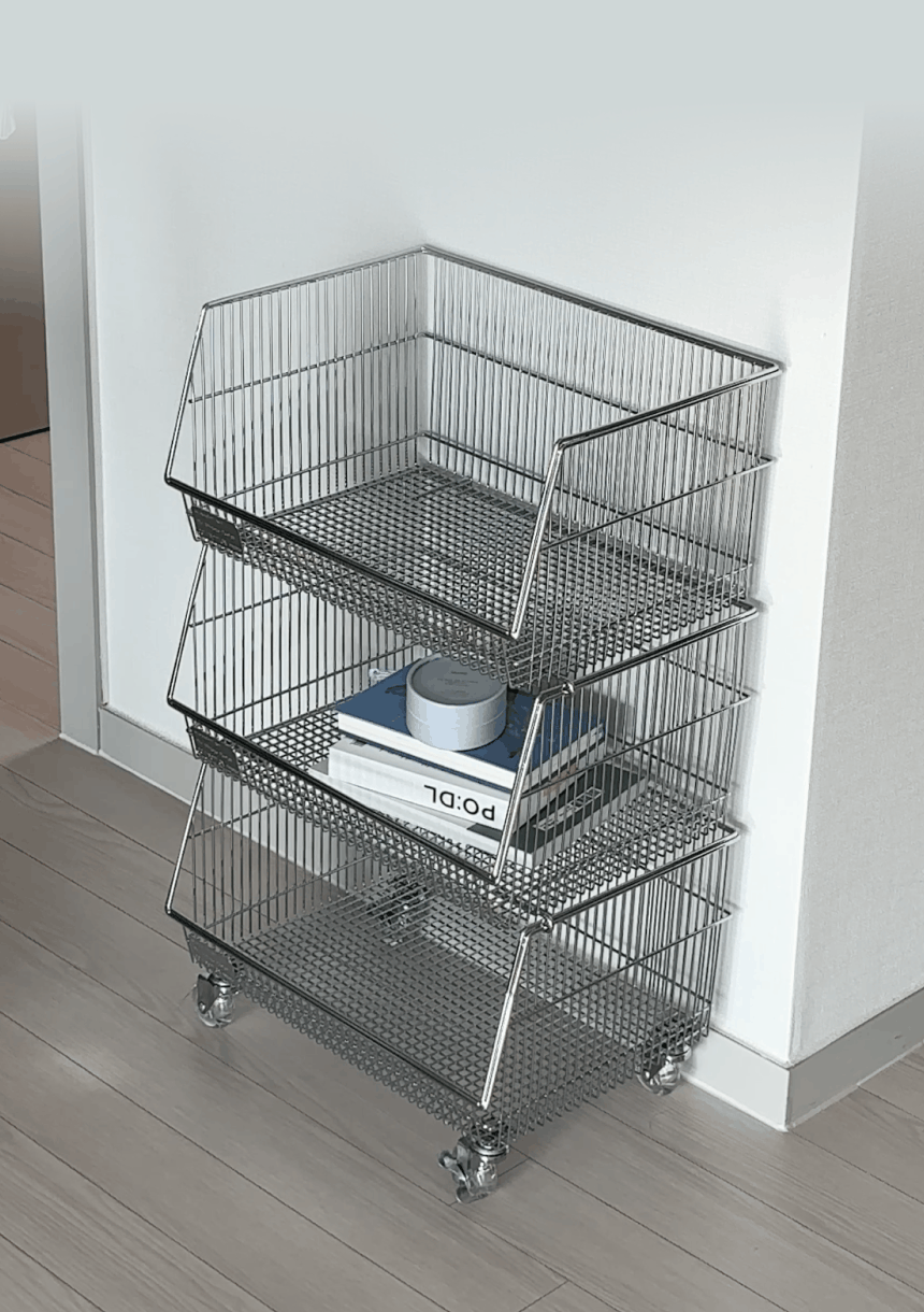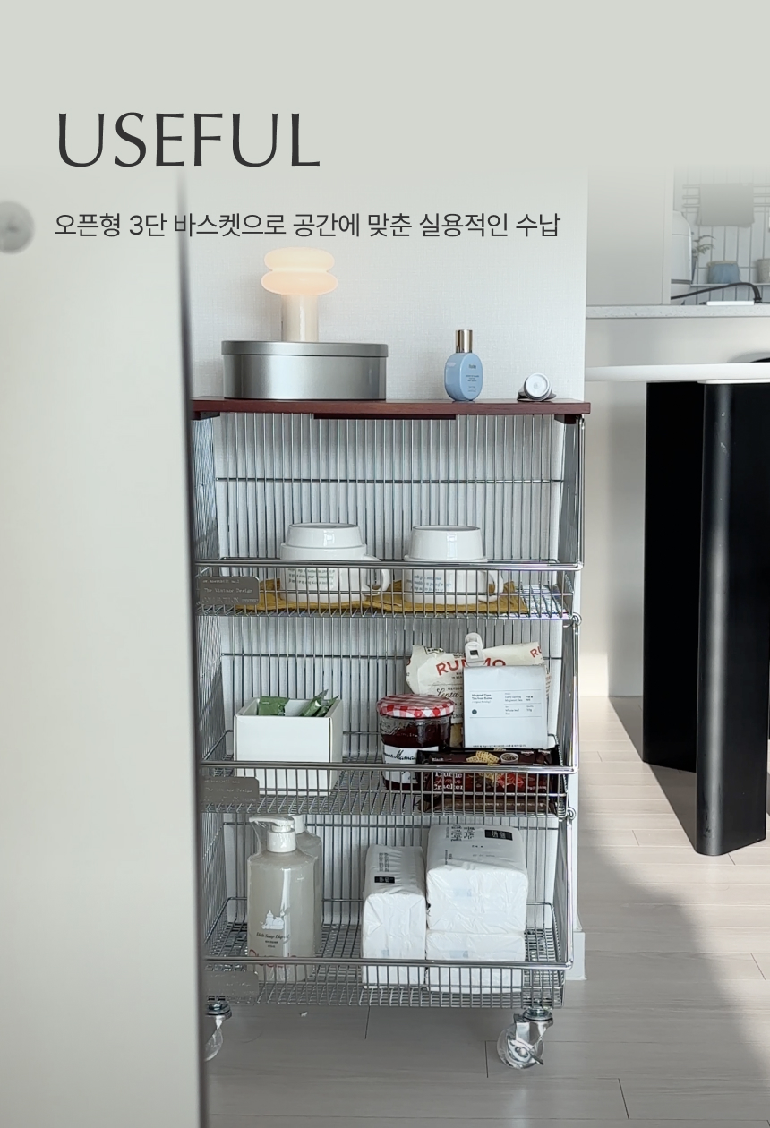 탄츠 3단 바스켓 트롤리 이동식 수납장