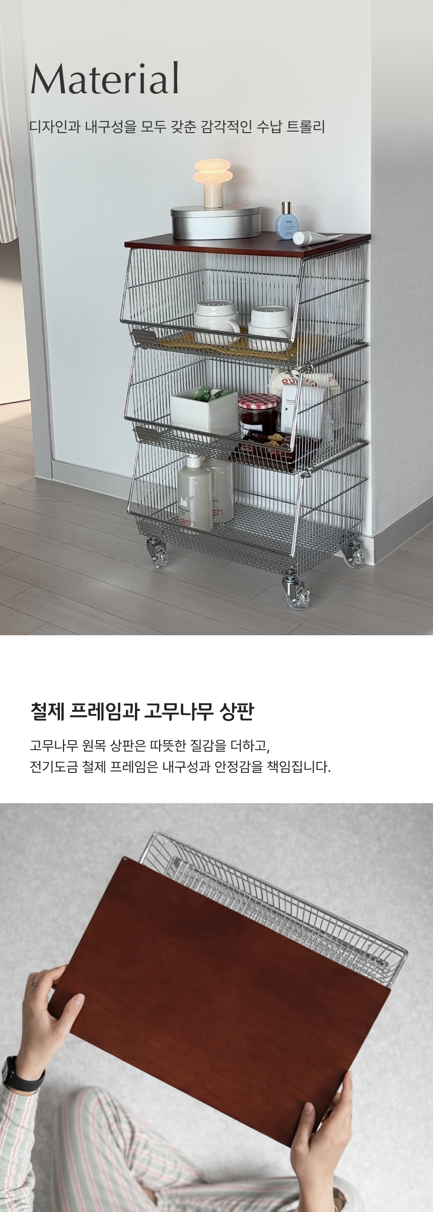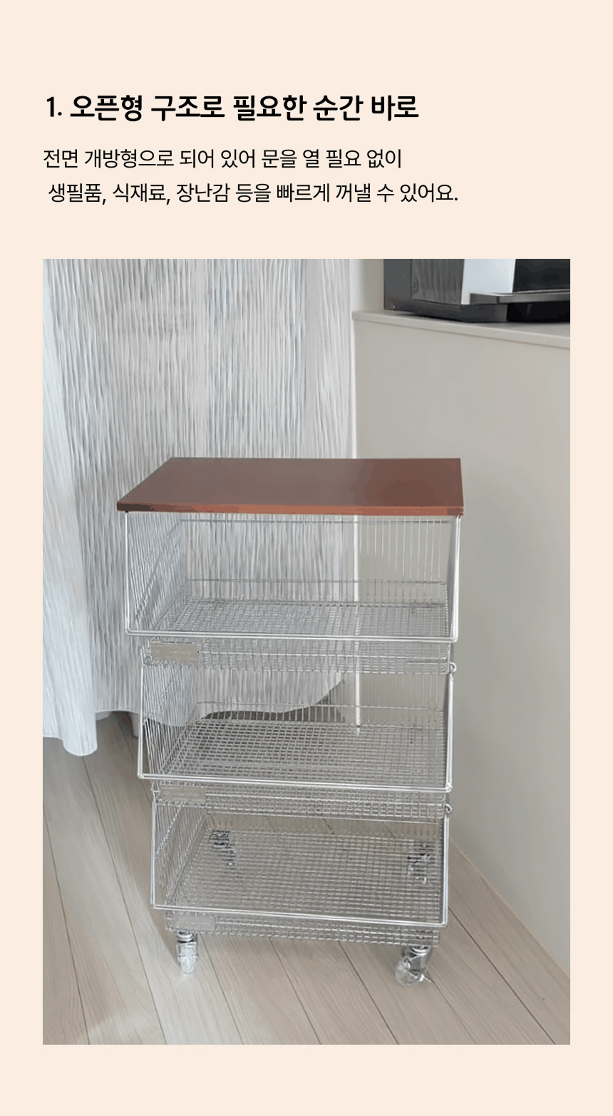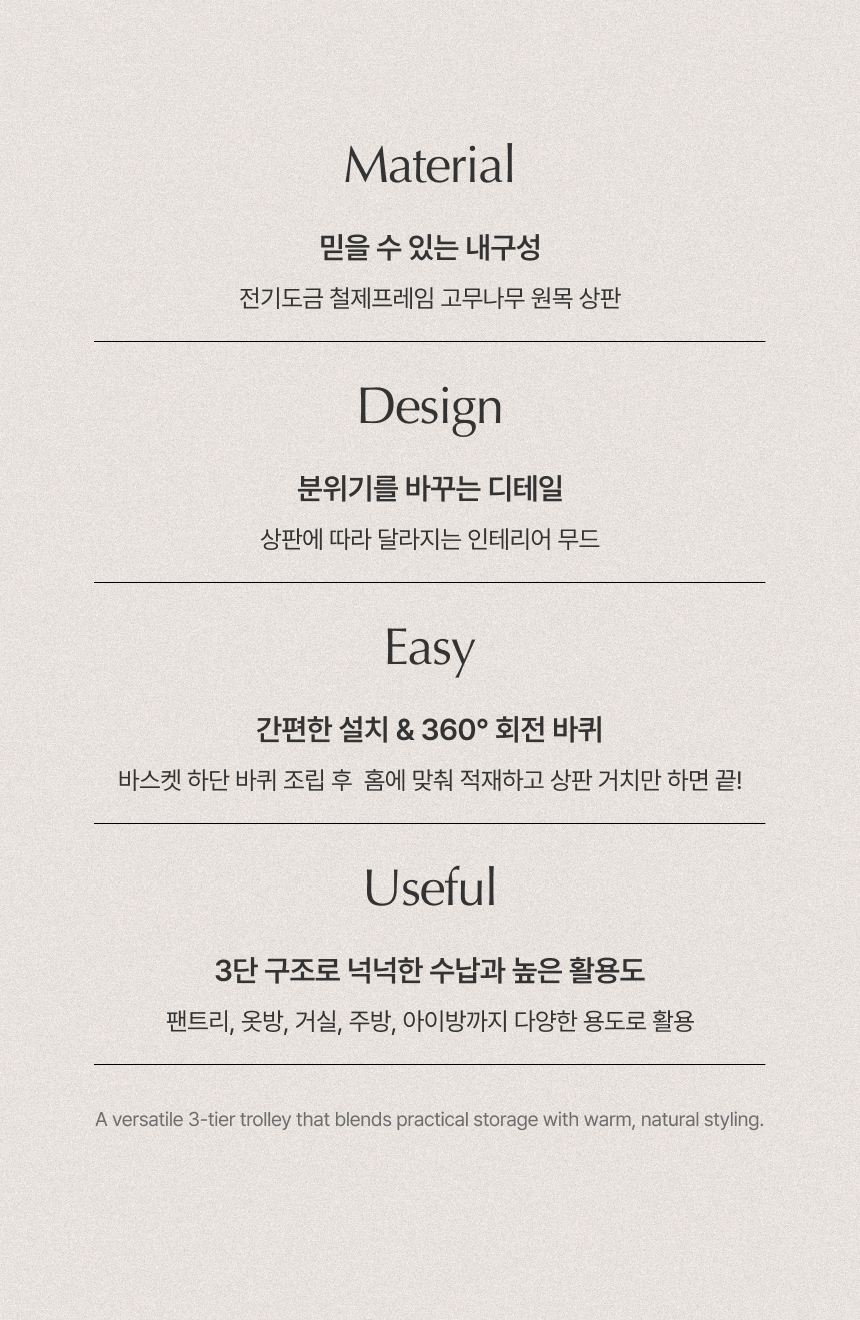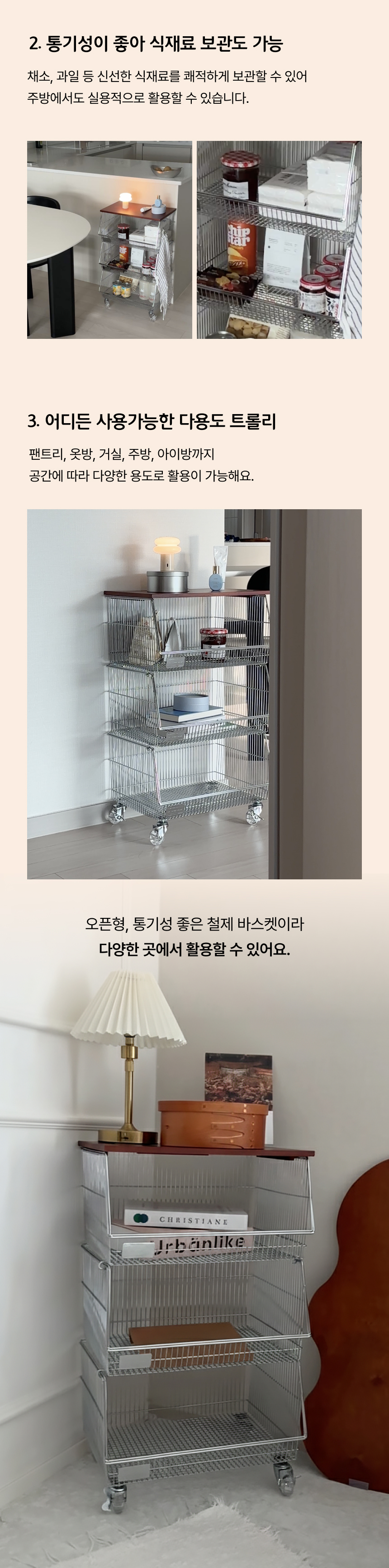 탄츠 3단 바스켓 트롤리 이동식 수납장
