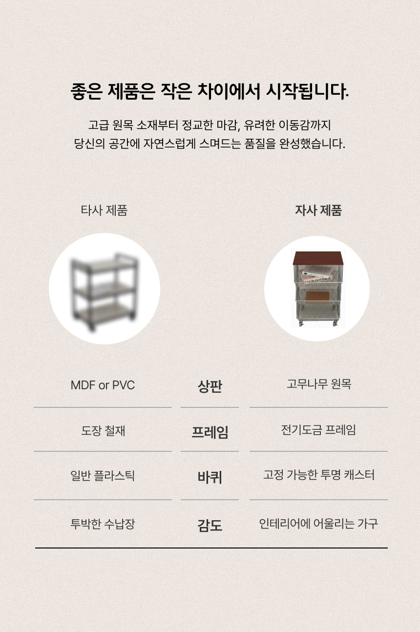 ✔ 고급스러운 고무 원목 소재 상판!